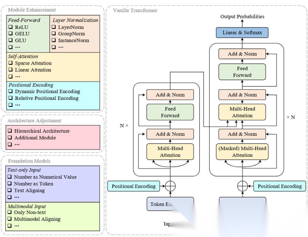 在保持Transformer基本架构不变的前提下,对核心模块进行改进。
