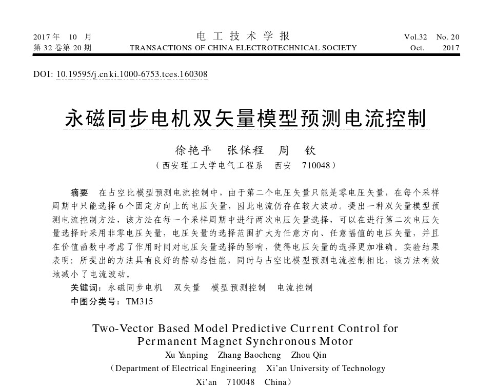 双矢量模型预测电流控制方法突破