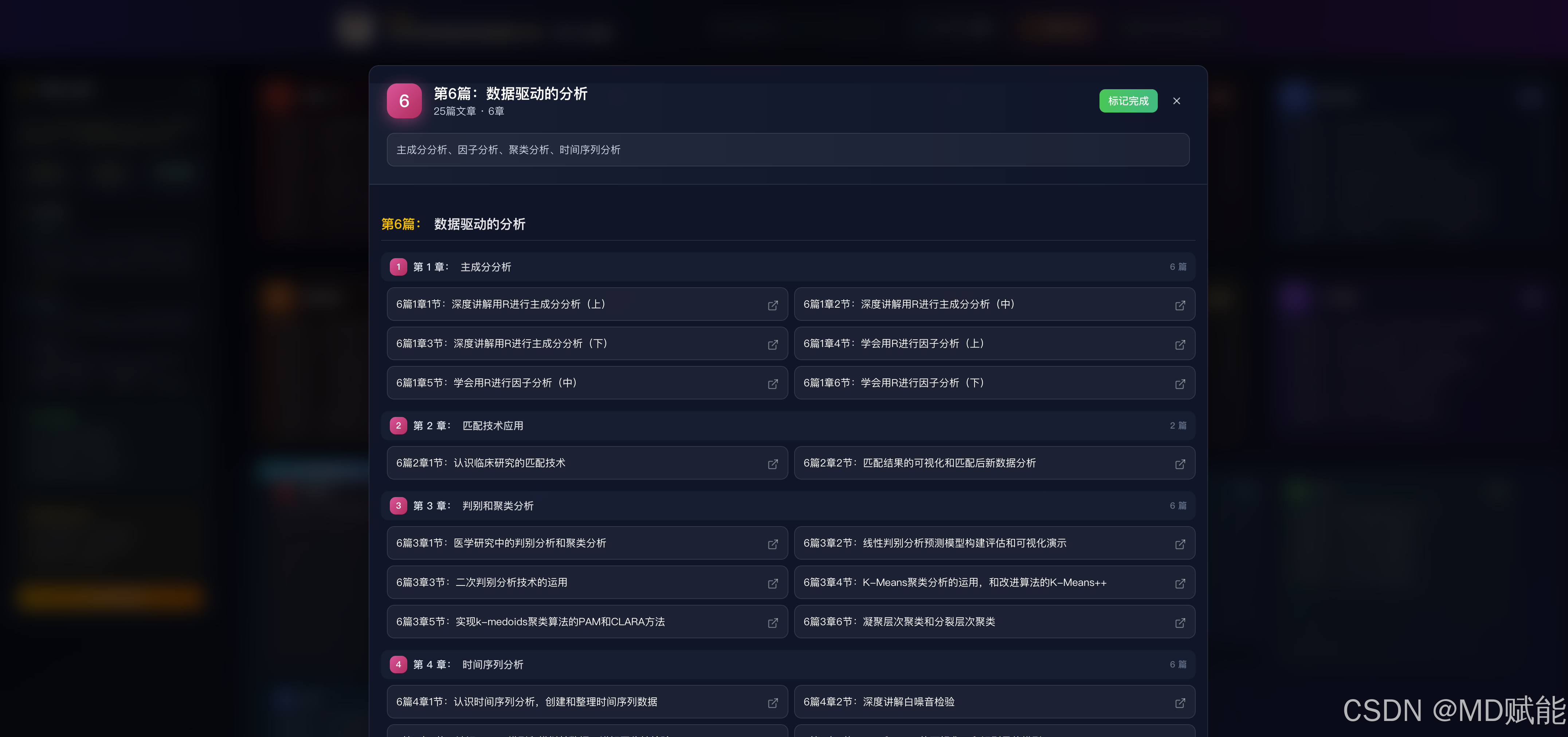 我们精心构建的《用R探索医药数据科学》学习地图,已于2026年3月中旬正式完成部署并上线。我们将专栏的核心内容重构为结构化的可视化知识图谱,不仅替代了原有的线性列表,更为学习者提供了清晰的进阶路径,订阅后的同学可以在PC端点击链接,查看目录:https://bestmd.coze.site/