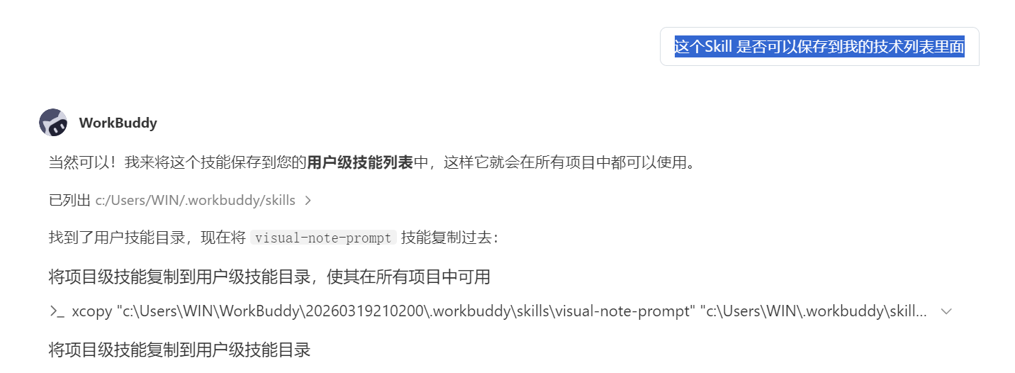 简单说,WorkBuddy 是一个 AI 智能工作助手,内置了一套可扩展的 Skill(技能)体系。