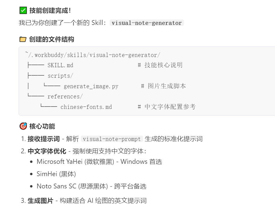 WorkBuddy 的知识卡片 Skill 会自动完成: