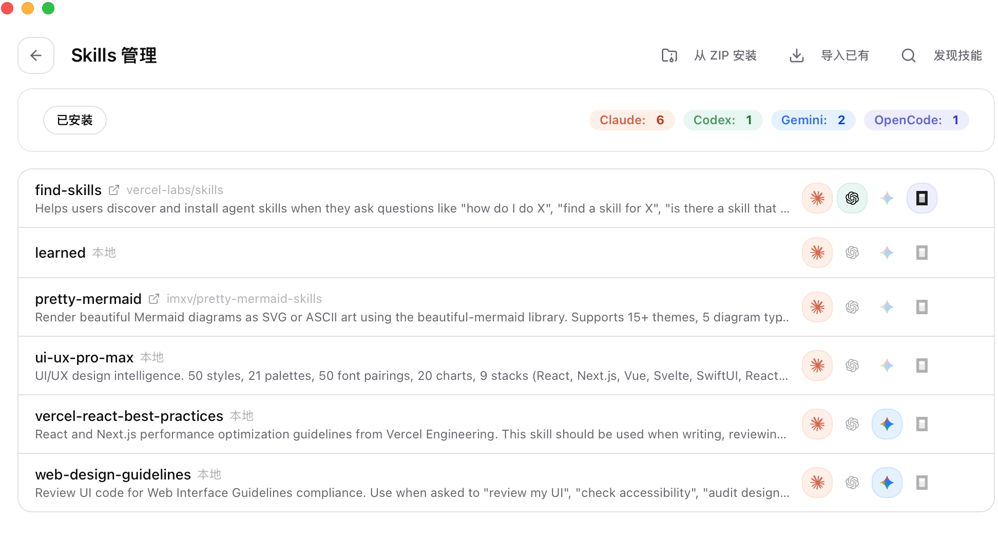 - 管理 Claude Code 和 Codex 的 Skills