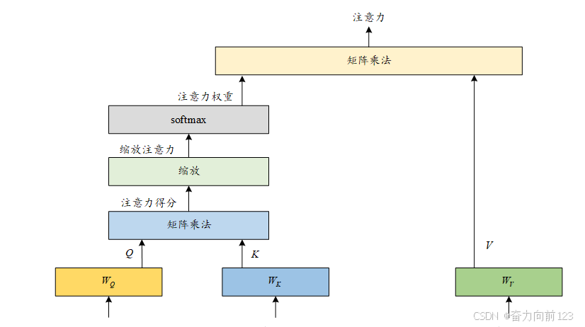 - 通过计算查询向量与所有键向量的点积相似度,得到注意力分数。这个分数反映了当前元素与其他元素之间的相关性。