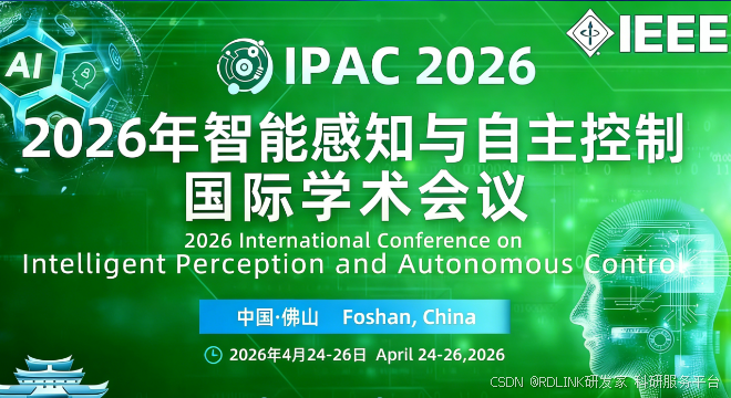 EI会议征稿!IEEE出版 | 杰青优青报告 | 2026年智能感知与自主控制国际学术会议(IPAC 2026)