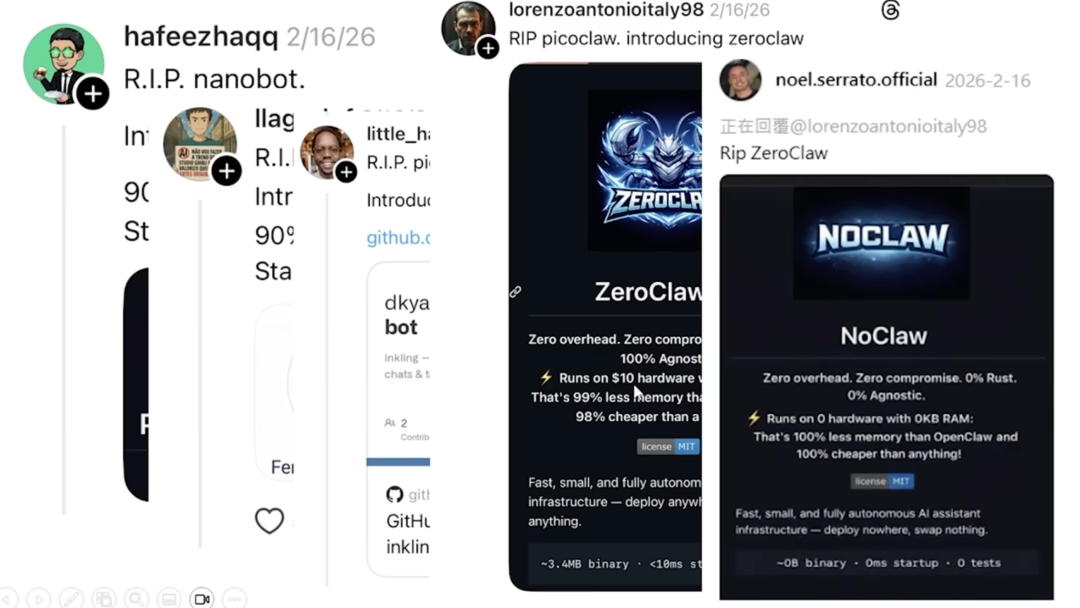 这个 OpenClaw 大乱斗最后结束在有人说:“ZeroClaw 已死,NoClaw 当立”——NoClaw 没有任何一行程式,也不占用任何资源,因为它也没办法做任何事情。