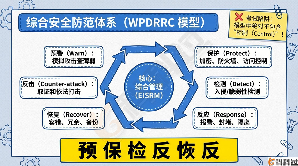 【记忆口诀】:预保检反恢反(预警、保护、检测、反应、恢复、反击)