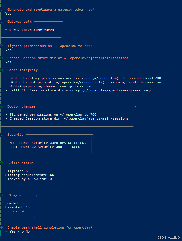 程序在最后给出了一个交互式选项:Generate and configure a gateway token now?