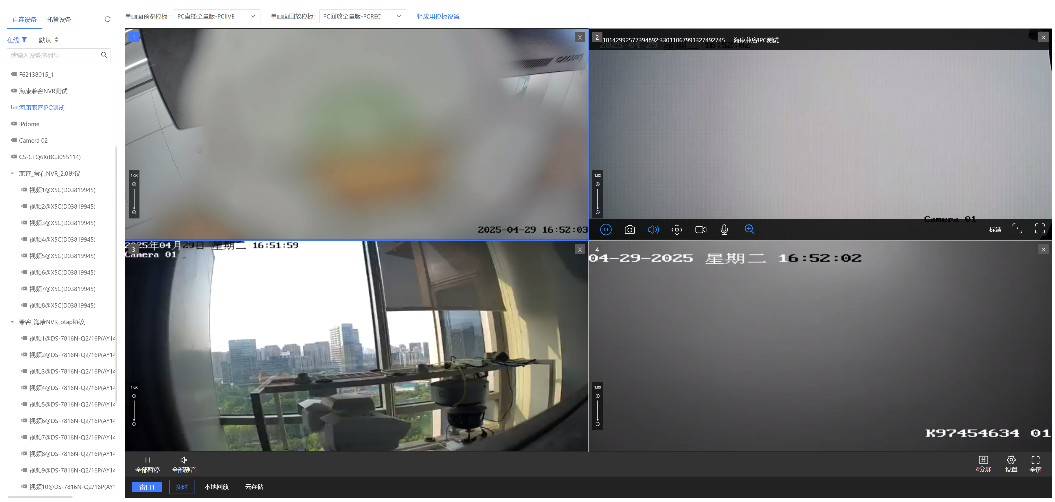 | 多设备画面预览 | 对多个摄像机同时取流,并在一个页面上展示多摄像机的实时直播画面。 |