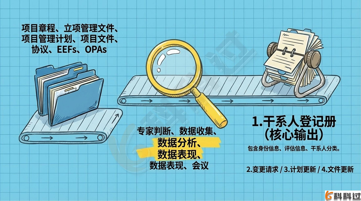 - 识别干系人:定期识别、分析和记录干系人利益和影响,核心工具包括权力/利益方格、干系人立方体、凸显模型等,输出干系人登记册