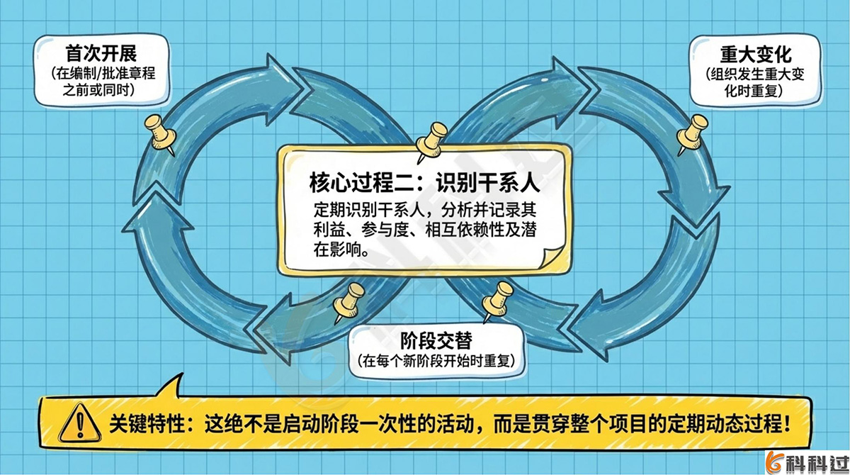 定期识别项目干系人,分析和记录他们的利益、参与度、相互依赖性、影响力和对项目成功的潜在影响的过程