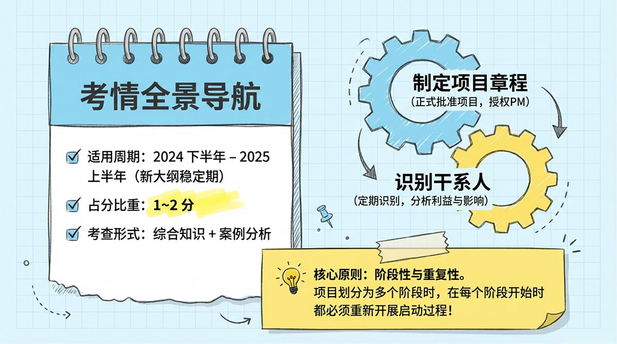 本章的重点内容主要集中在制定项目章程、识别干系人两大过程。今天,我们就来系统梳理这一章的核心知识点,助你稳拿基础分!
