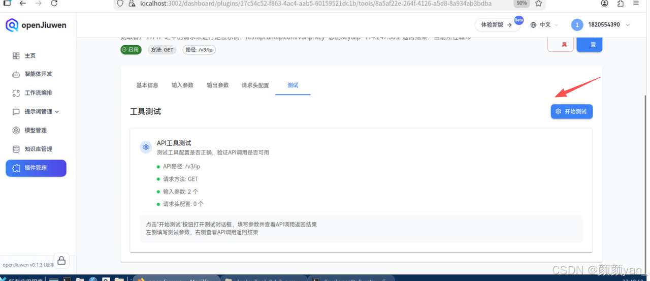 测试成功后,工具状态变为启用。若修改参数或代码,工具将自动变为禁用,需重新测试通过才能生效。