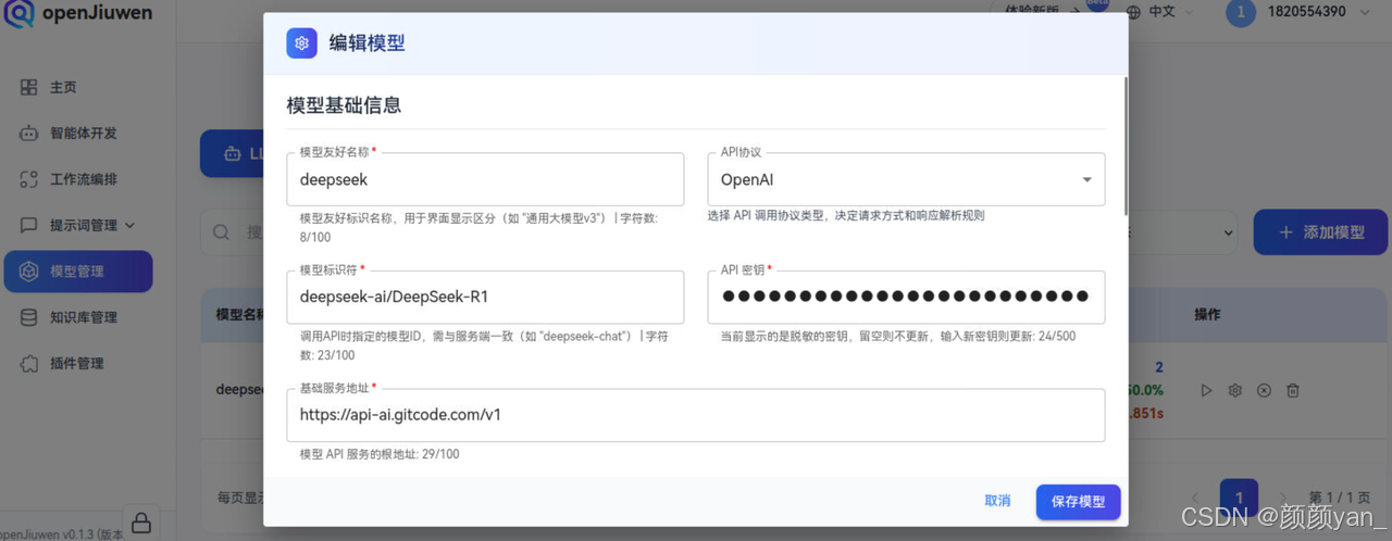 我们先切到模型管理里面,快速的添加一个大模型服务