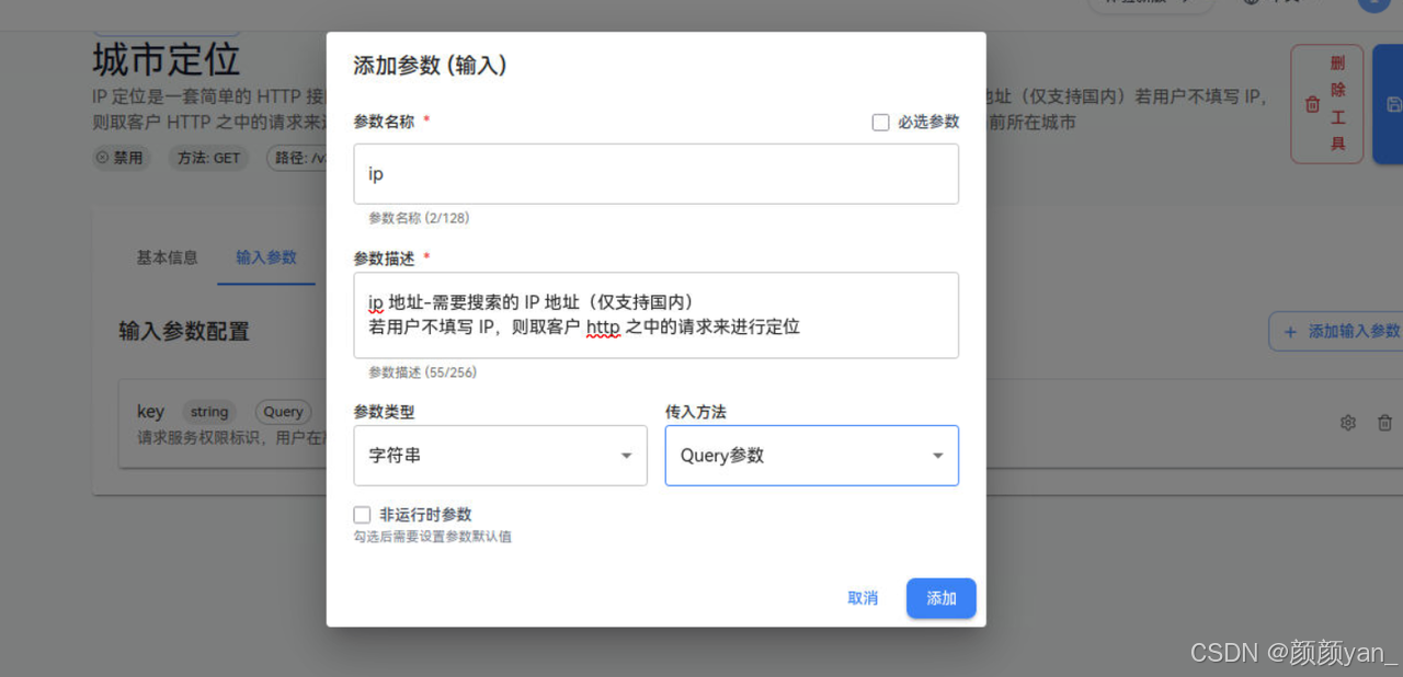 我们在工具详情页的「输入参数」Tab 中依次添加: