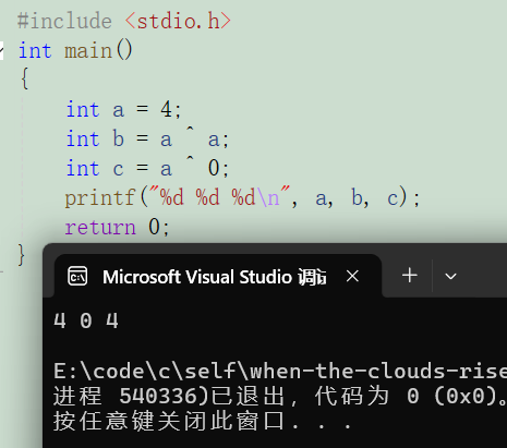 我们要先弄清楚a^a,a^0的值是什么:两个相同数字异或的结果是0;0和任何数字异或的结果还是那个数字