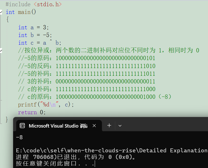 规则:两个数的二进制补码对应位不同时为 1,相同时为 0(“同 0 异 1”)