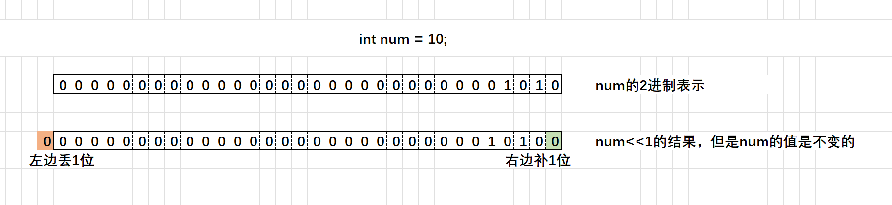 规则:左边丢弃,右边补 0