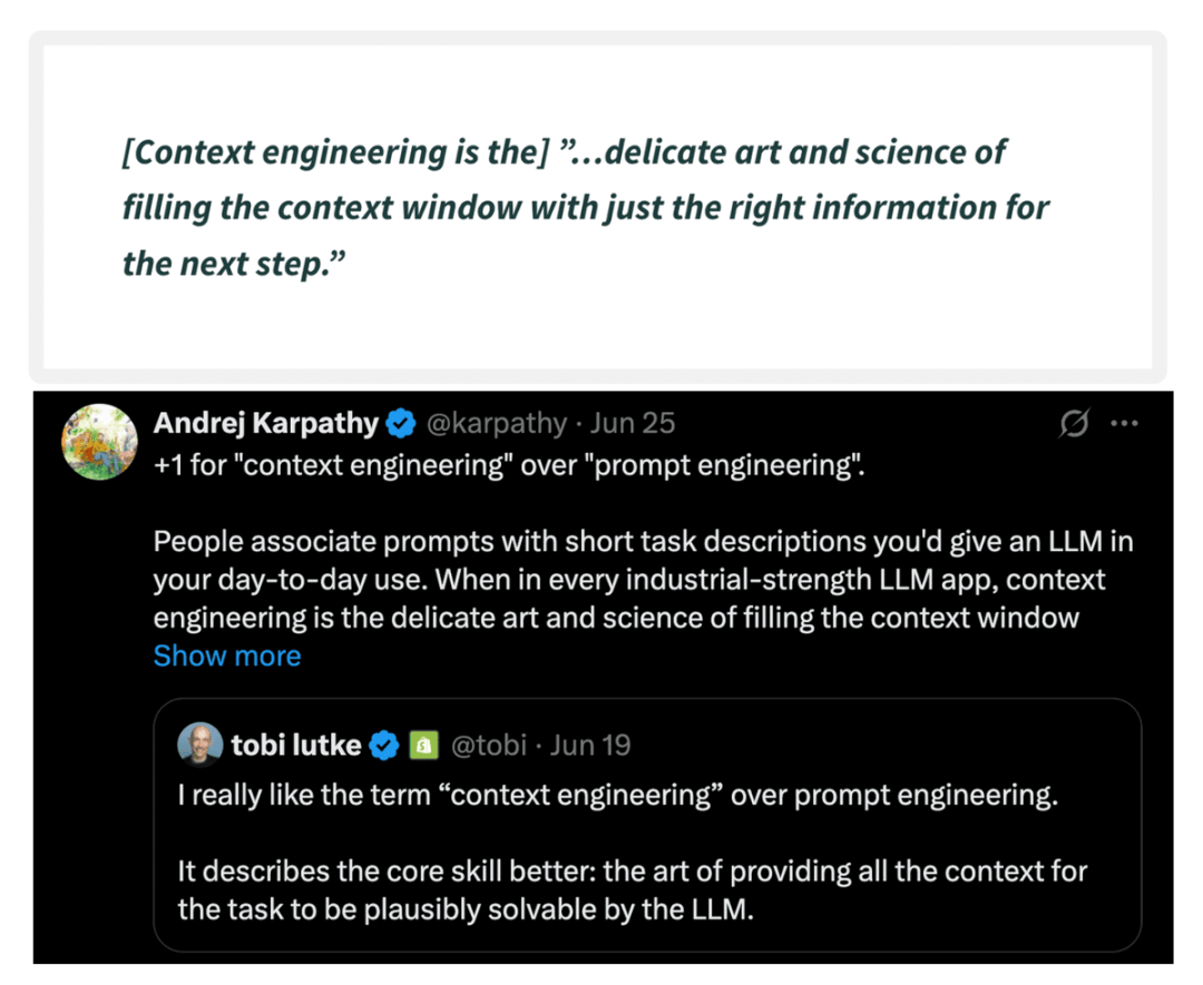 以下是知名人工智能专家 Andrej Karpathy 关于上下文工程的一句名言,它深刻地阐明了这一领域的重要性。他指出,上下文工程实际上是在为语言模型创造一个理想的工作环境,使其能够充分发挥其潜力。