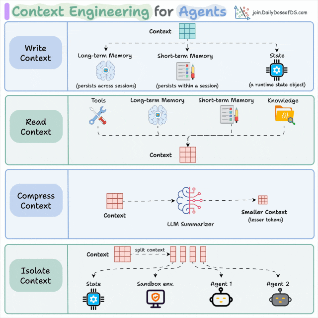 编写上下文、选择上下文、压缩上下文和隔离上下文。让我们逐一深入了解每个阶段。