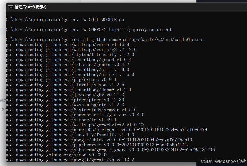 在 Windows 系统的命令行(CMD)中执行以下命令安装 Wails: