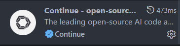 插件安装完成后,重启 VS Code 使配置生效,重启后左侧面板将出现 Continue 侧边栏图标,表明插件安装成功。