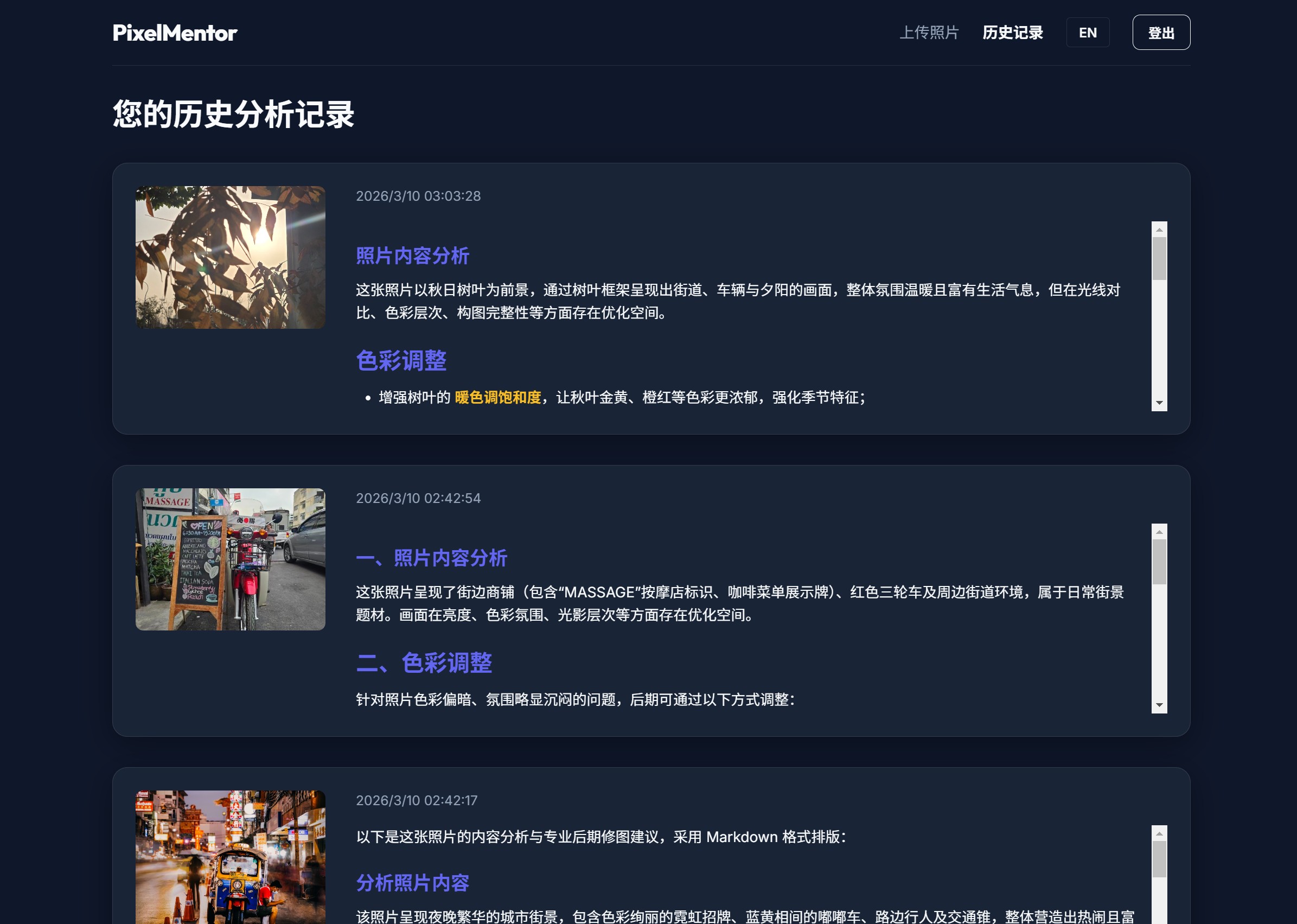 PixelMentor:一个开源网站 · 调用AI视觉能力分析图片 · 提供影视后期修改意见