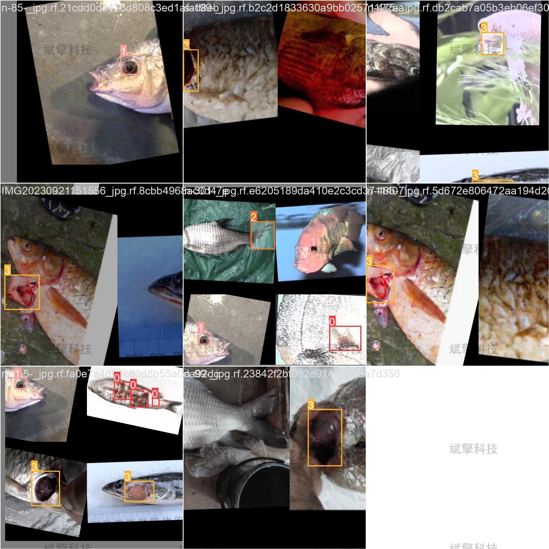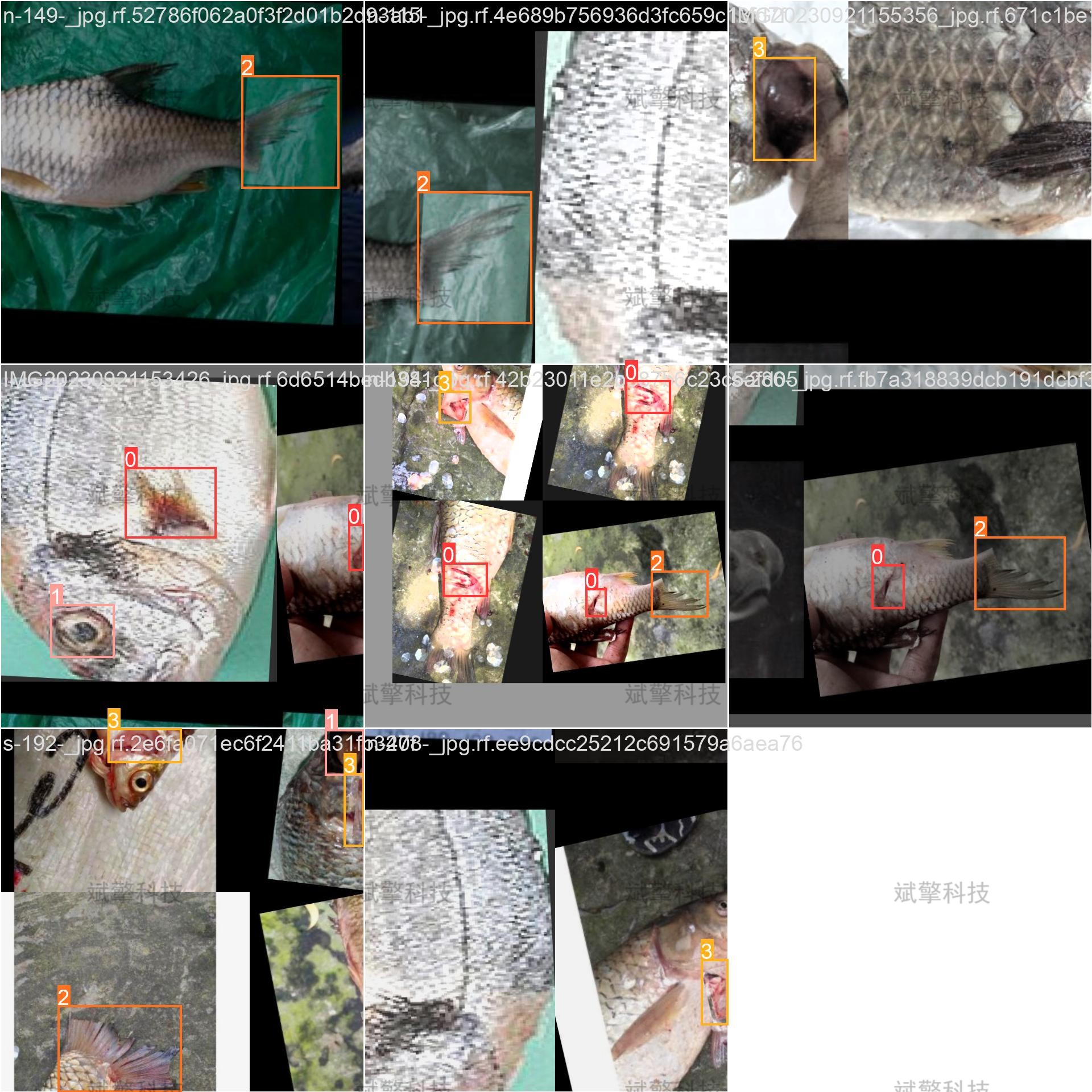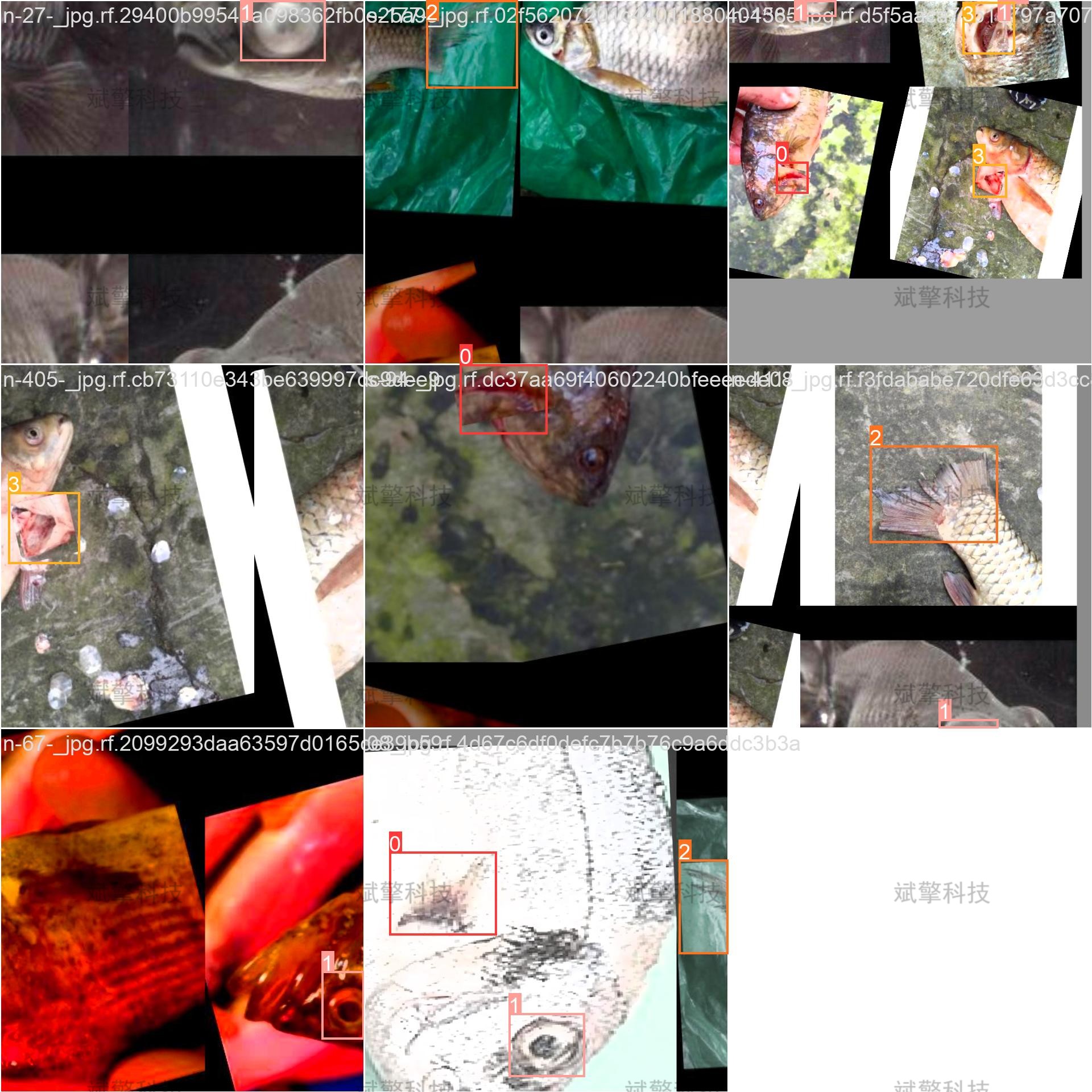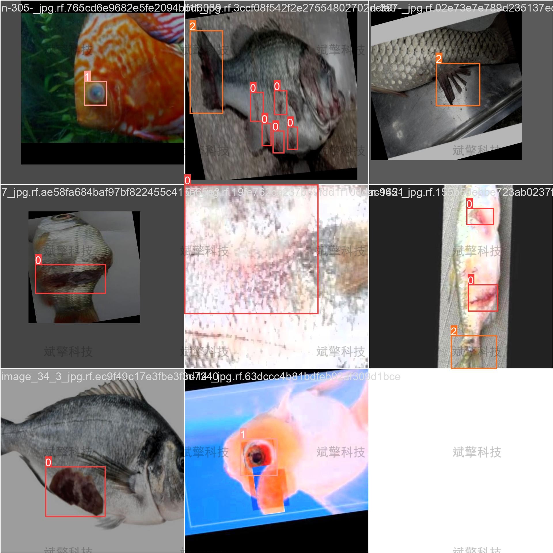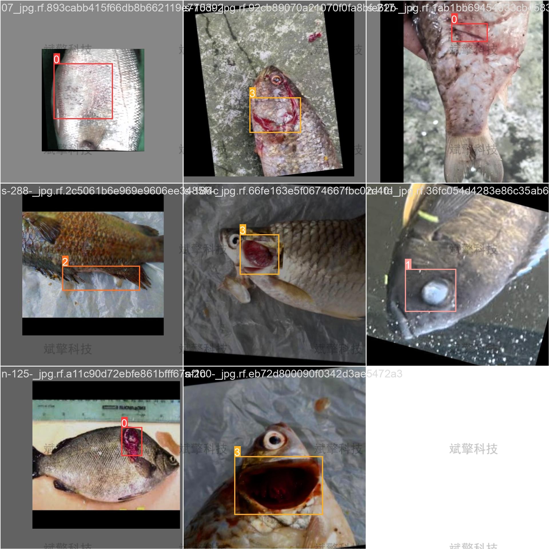 Fin lesions (鳍条损伤):涵盖鱼鳍开裂、磨损、充血或溃烂等情况。