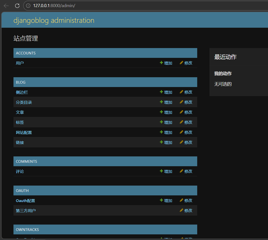 后台管理:基于 Django 内置的admin系统扩展,对 MVT 层的 Model 进行可视化管理,实现文章、用户、评论、插件的快速操作。