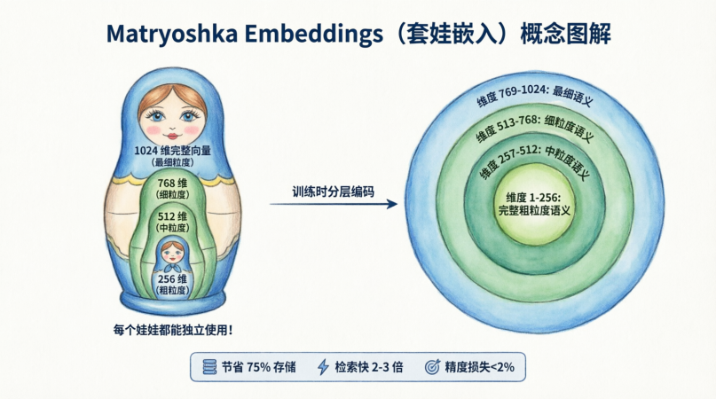 4.1 套娃嵌入 (Matryoshka Embeddings):弹性存储的艺术
