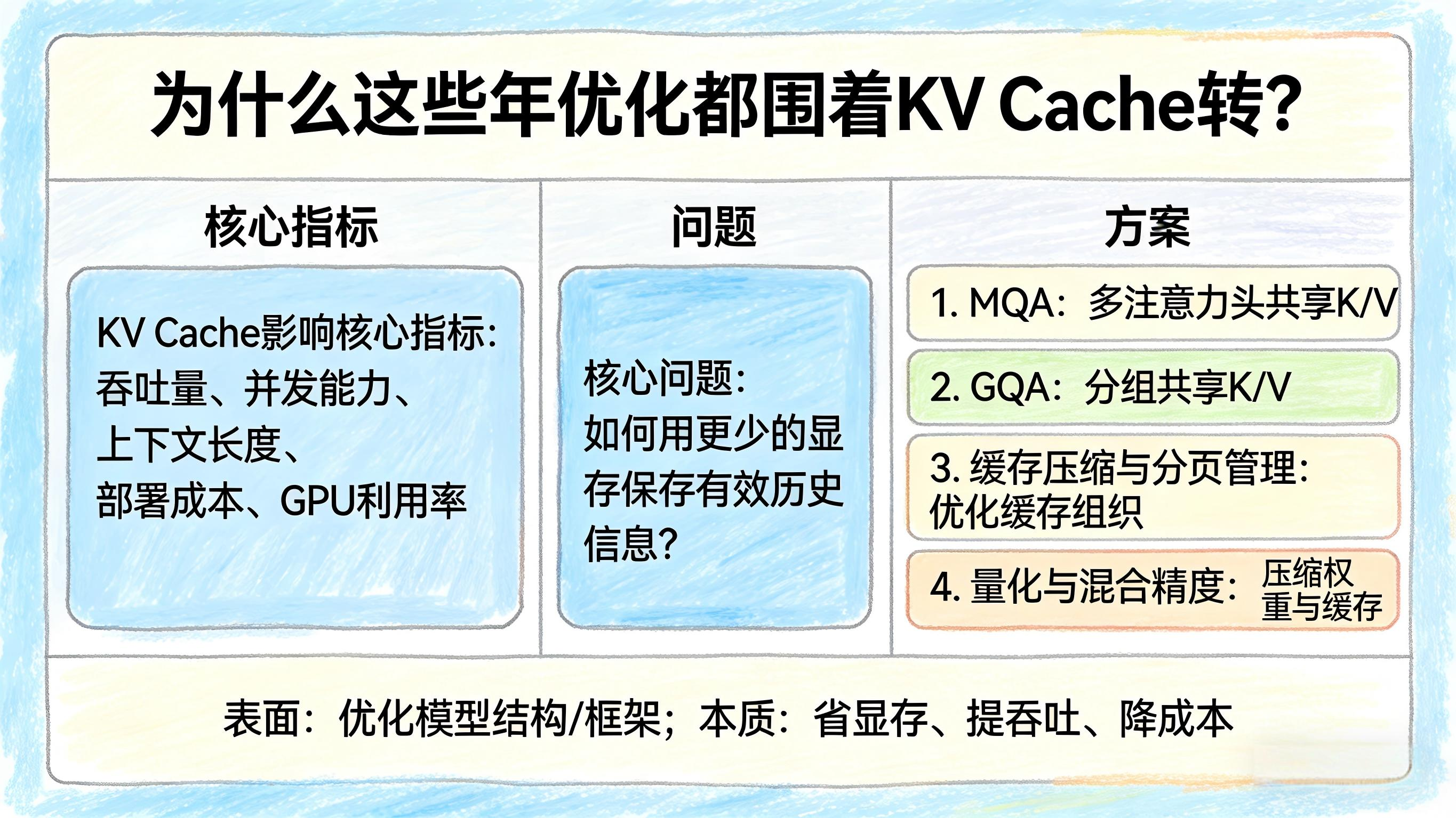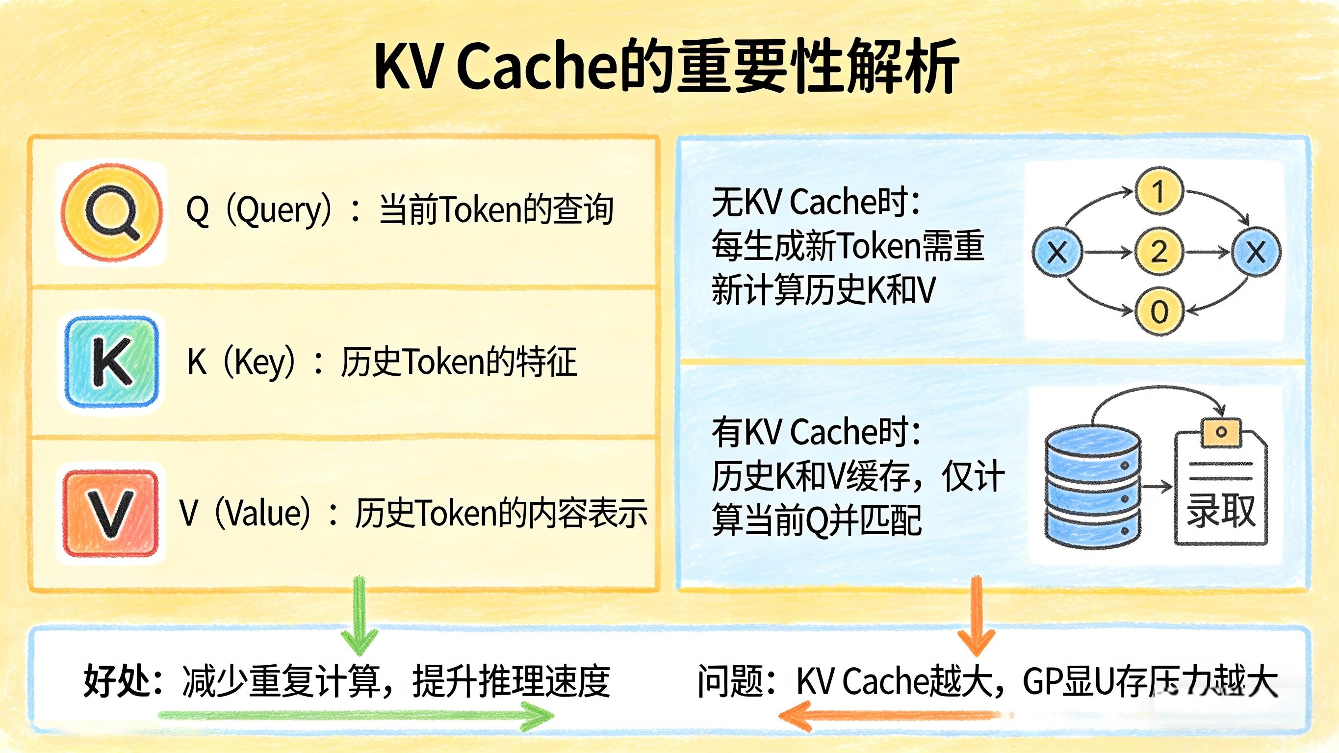 KV Cache让推理避免了大量重复计算,是性能提升的关键;