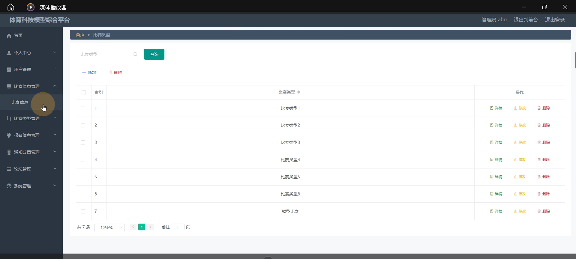比赛类型管理模块: 实现比赛分类的动态管理功能,支持体育竞技、知识竞赛、文艺比赛等多种类型的添加、修改与删除,建立类型与比赛信息的关联关系,便于用户按类别浏览与筛选比赛,提升信息检索效率。