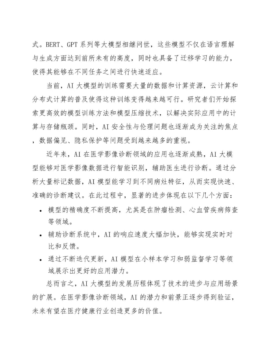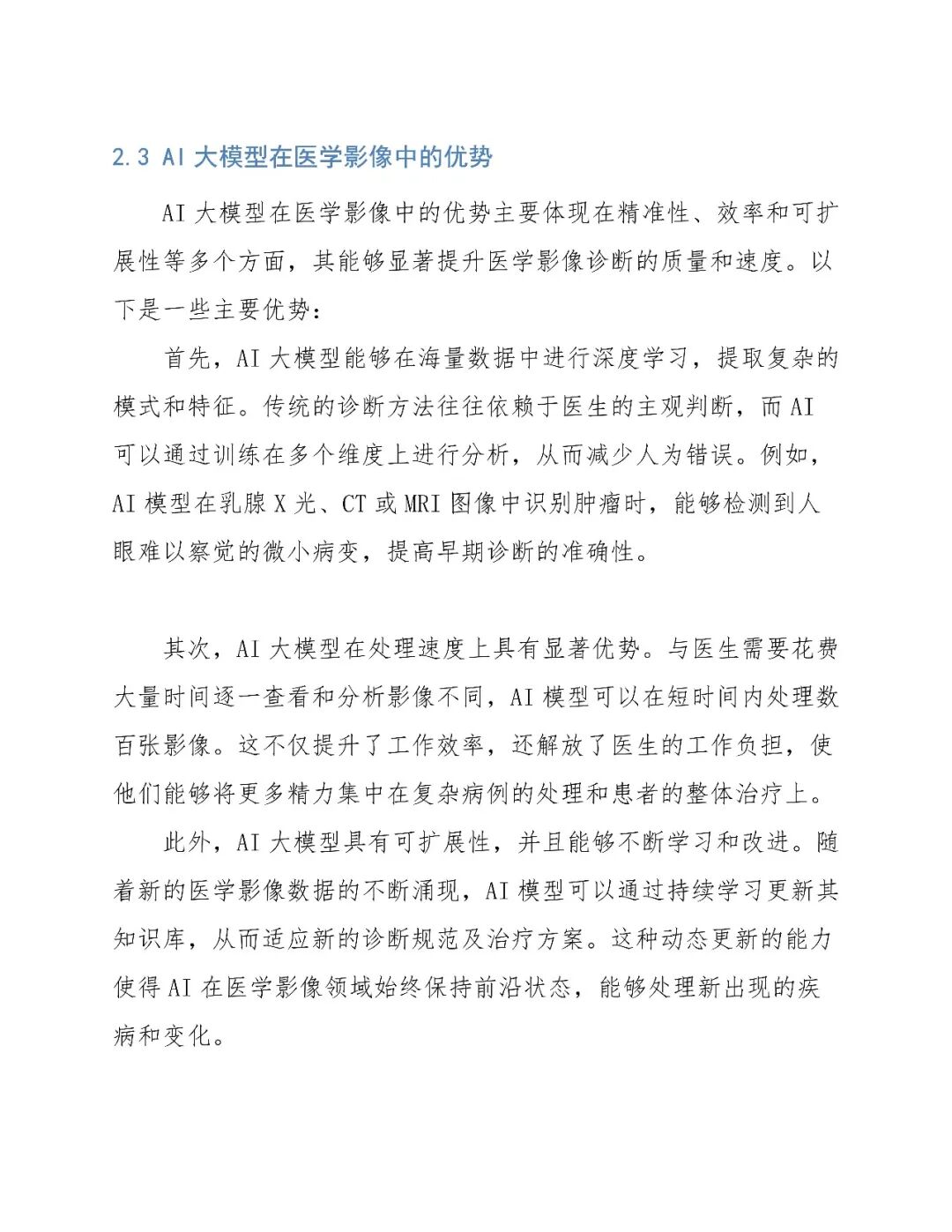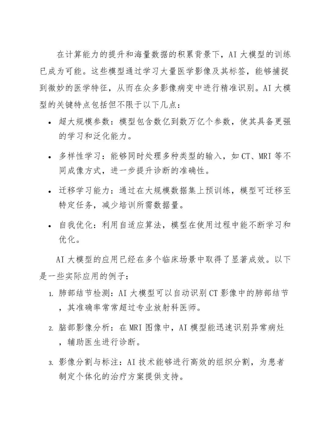 当前AI大模型在医学影像领域的应用已逐步成熟,具备高精度、高泛化能力。