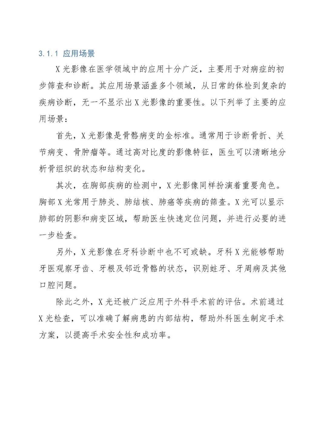X光:快速、经济,适用于骨骼和胸部初步筛查。