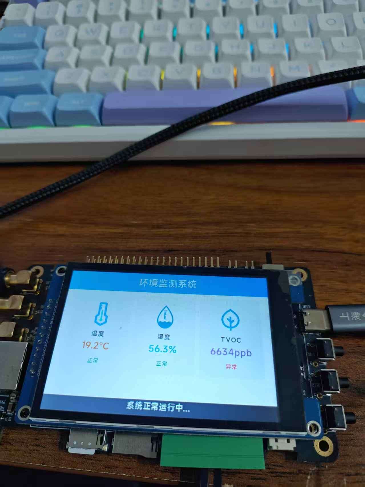 利用AirUI嵌入式UI框架,在本地TFT屏幕上实时显示采集到的温湿度、TVOC环境参数;