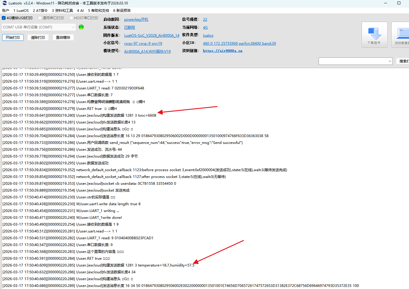 使用 Air8000A 整机开发板 + 屏幕,用 iRTU+luatos-docs-code-100 开发一个 iRTU+RS485 温湿度传感器 +RS485 TVOC 的项目