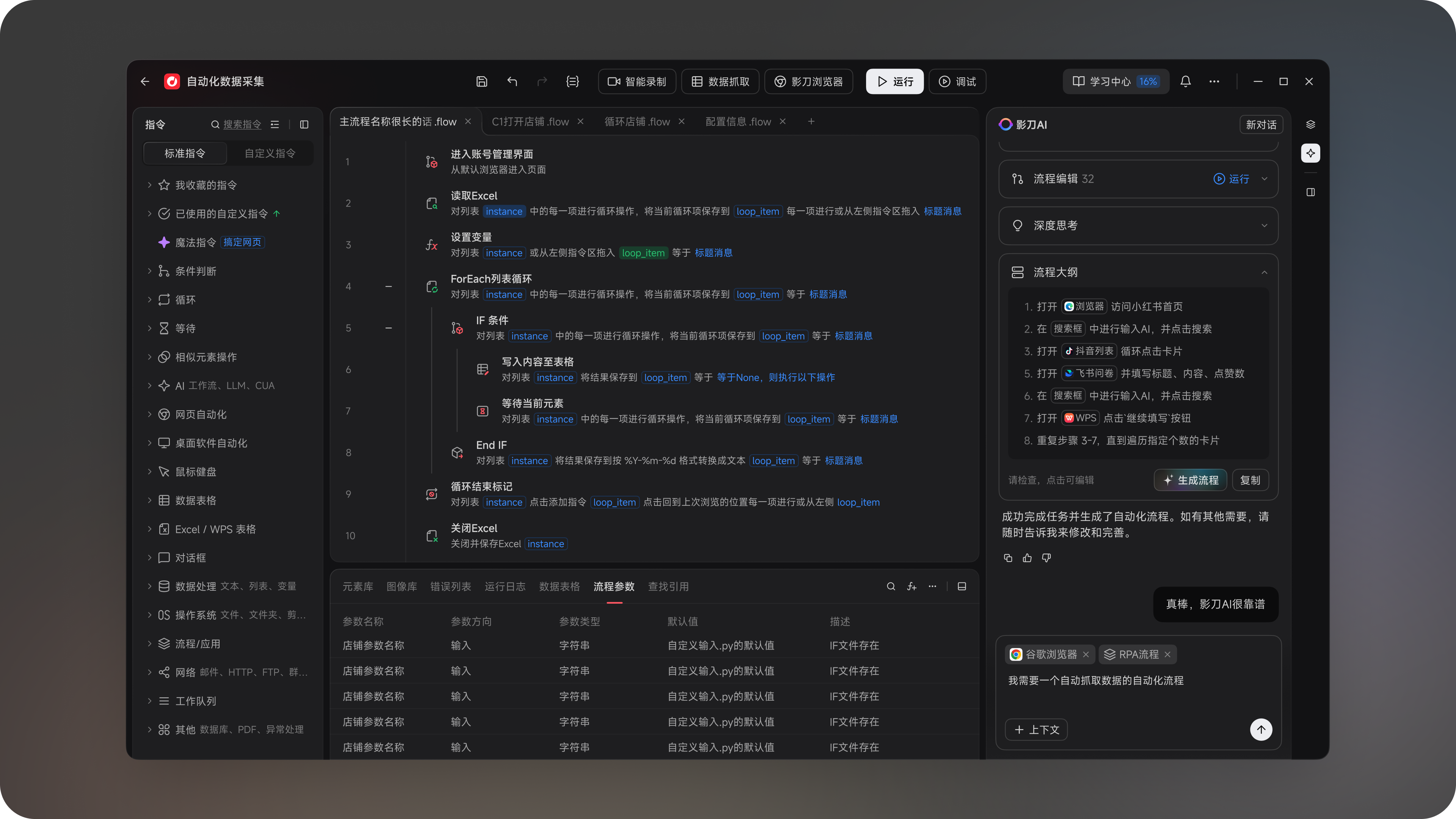 影刀RPA 6.0的AI工作流指令,是AI能力和流程编排的“智能引擎”。
