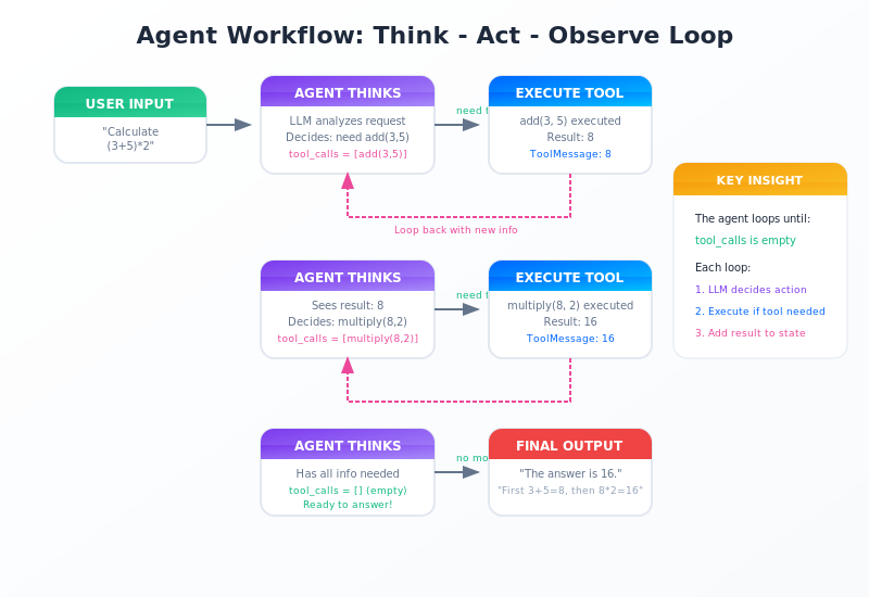 如果你用过ChatGPT,你一定体验过那种"一问一答"的对话方式。但真实的AI应用远比这复杂——想象一个客服机器人,它需要:先理解用户意图、查询数据库、调用外部API、根据结果决定下一步行动、还要记住之前的对话内容…