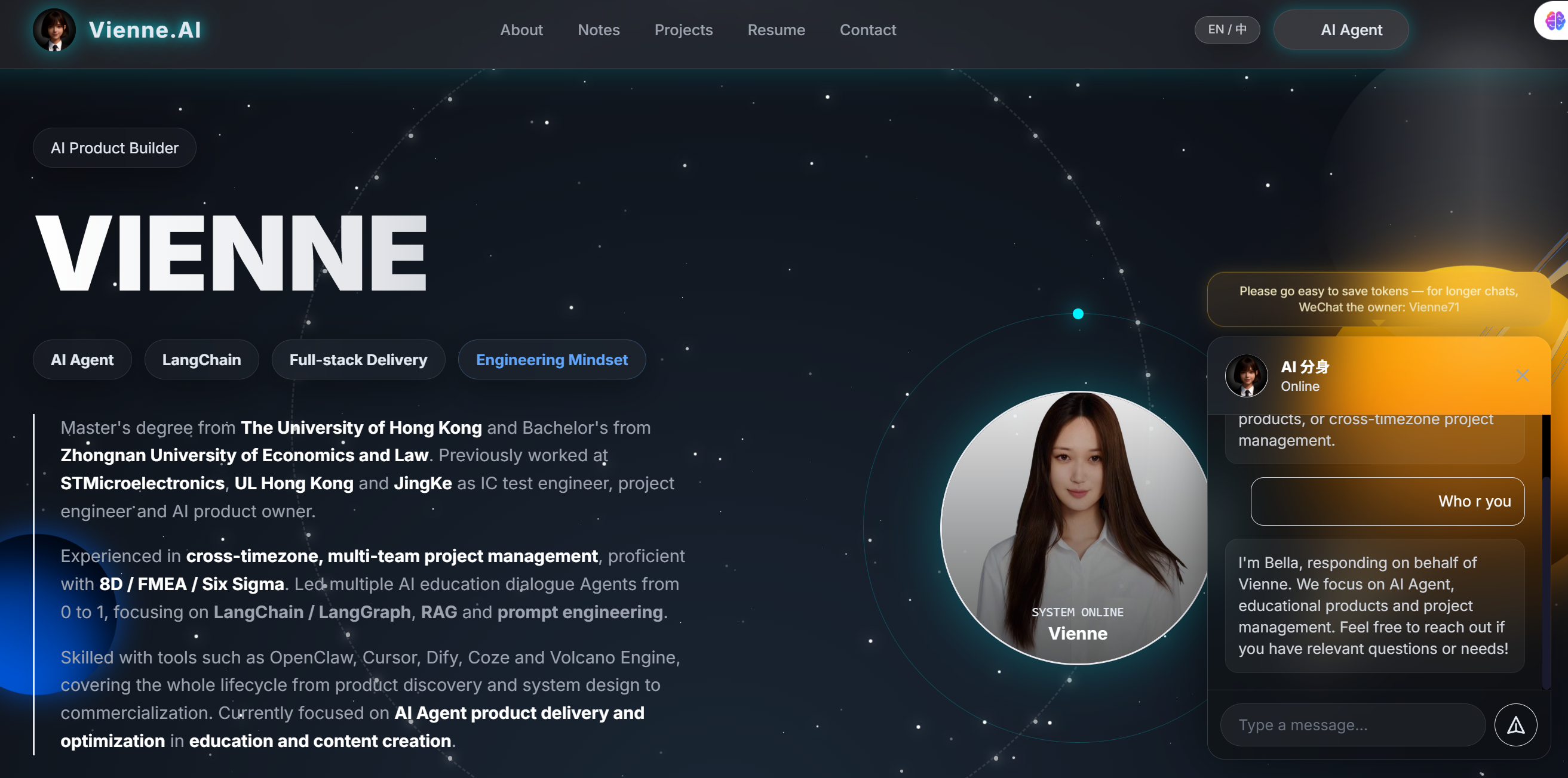 这是一个融合工程背景与 AI Agent 落地实践的个人品牌网站,核心亮点兼顾颜值与实用性,新手复刻后可直接使用: