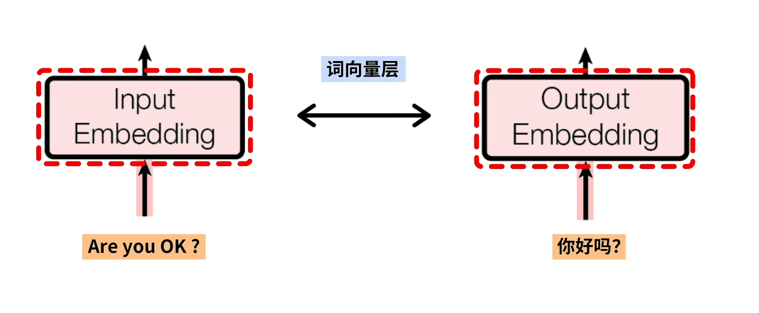 相同的,outputs(shifted right)的”你好吗?“也会被转化为向量。