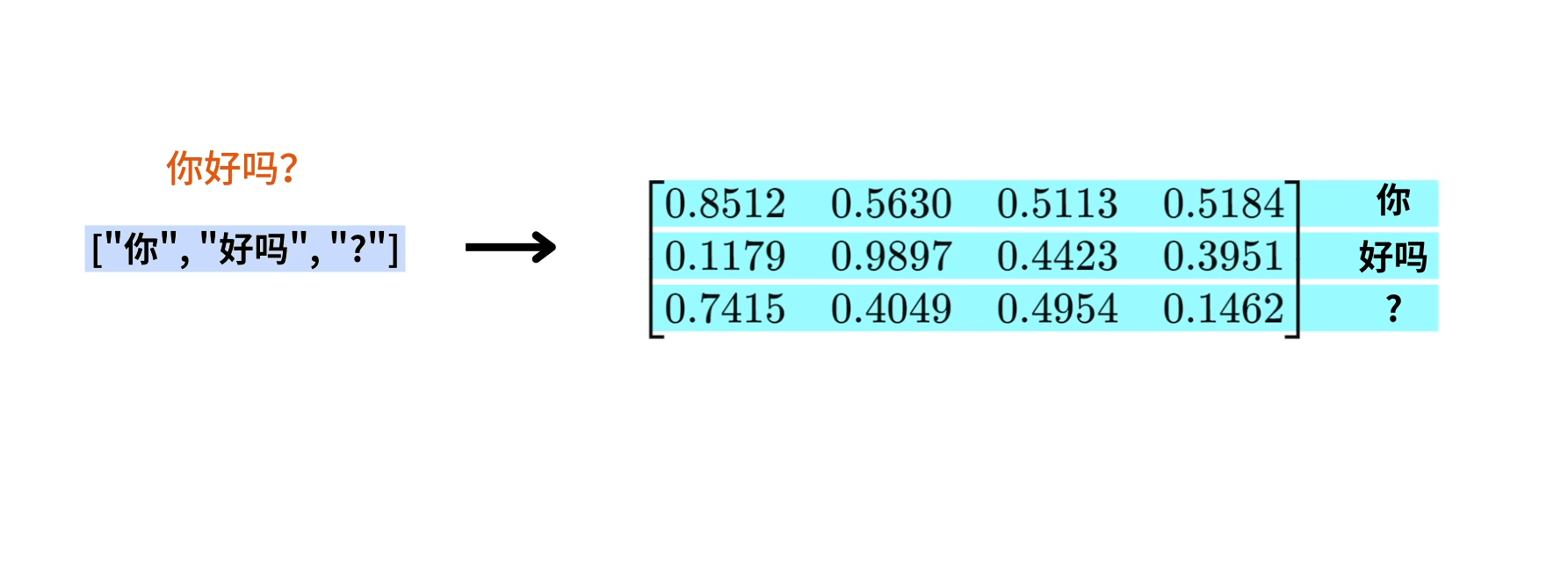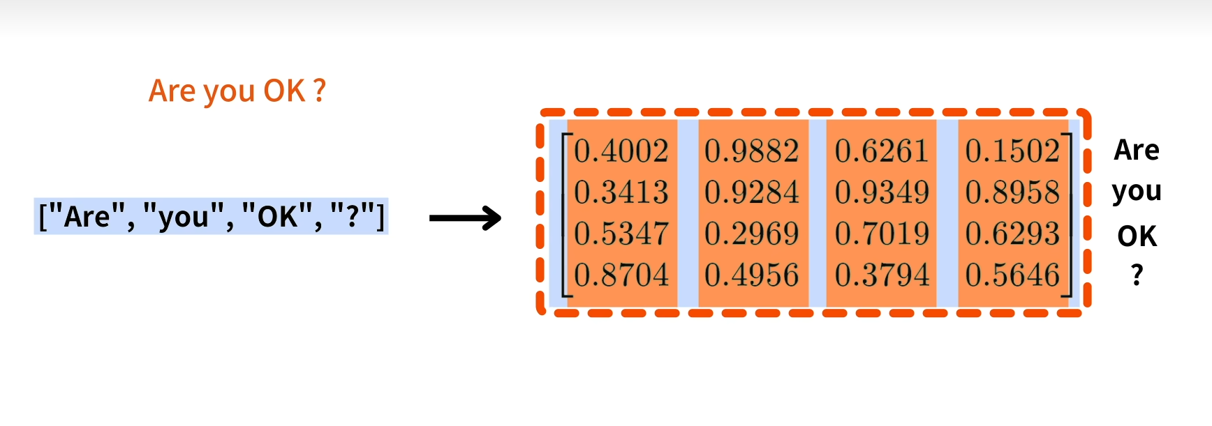 这里inputs的”Are you OK?“被转化成为一个4x4的矩阵,每一行代表一个单词。