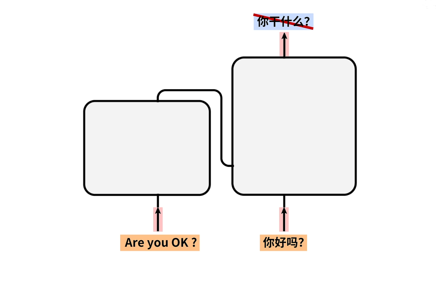假设要翻译一个句子,这里inputs输入的就是待翻译的英文数据,outputs(shifted right)输入的就是中文翻译标注数据。然后outputs probabilities输出的便是翻译预测的结果(注意:这里的outputs probabilities是错误的代表模型实际的输出可能会和中文翻译标注数据有出入)。