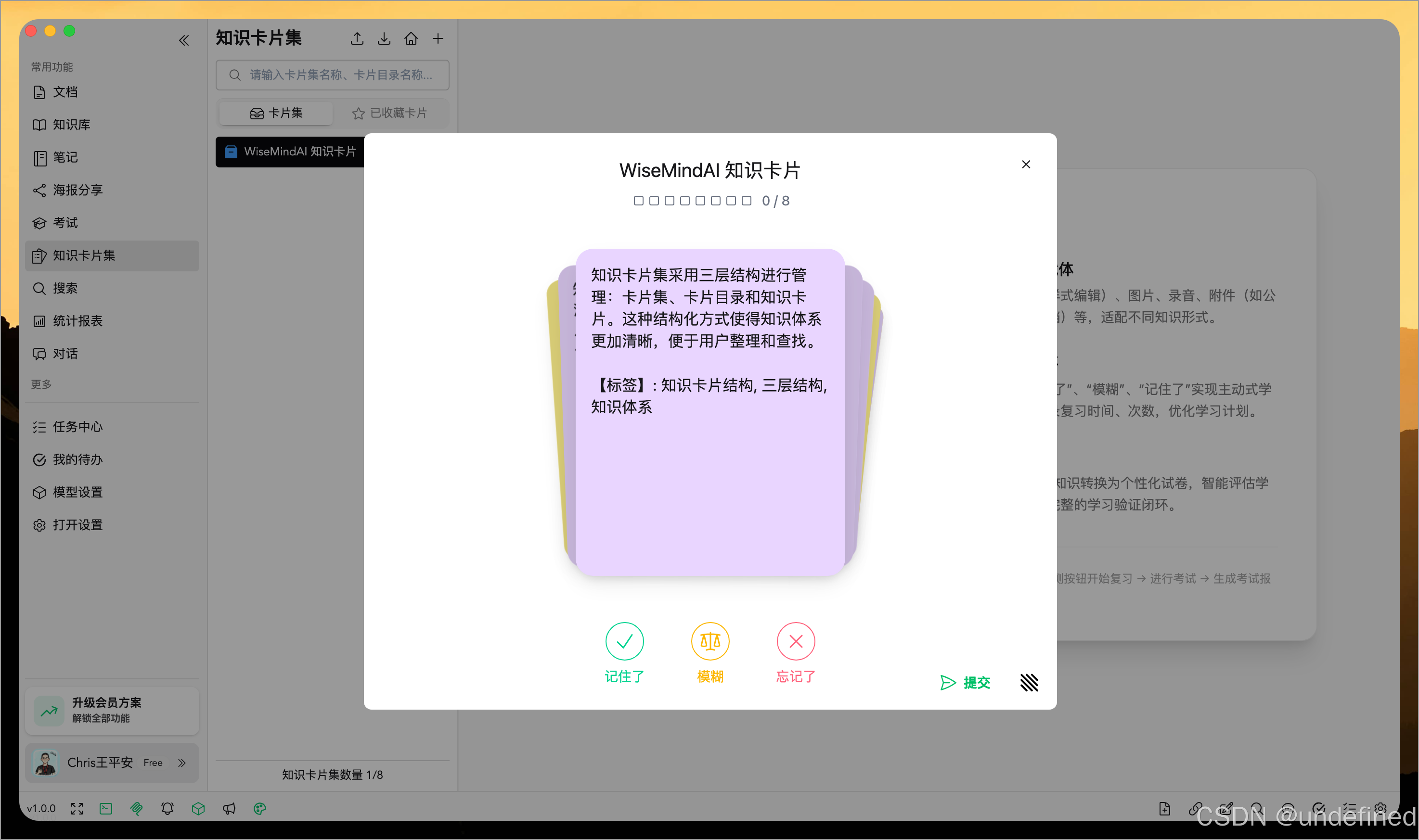 知识卡片集把大段内容拆成一张张可练习、可复习的小卡片,让学习不再停留在“看过”。它更强调真正掌握:把知识拆小、反复练习、持续回忆,再通过反馈逐步形成属于自己的知识地图。