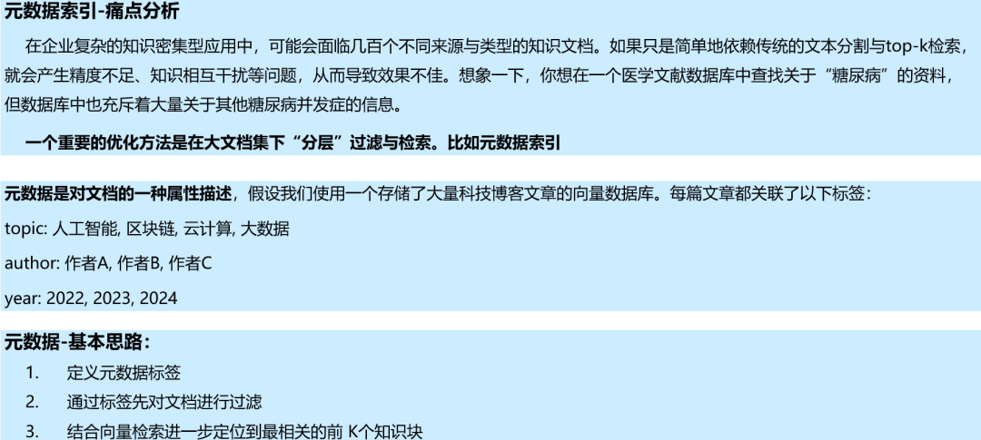 | 2. 文档加载准确性与效率 | 文档格式不一导致读取效果差。 | 1. 优化读取器:针对不同文档格式设计专门的读取器。 2. 数据清洗:对原始数据进行预处理。 |