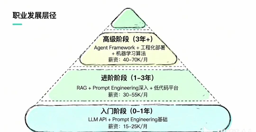 - Agent 编排(占比 20%): 让 AI 不止会聊天,还会用工具(查天气、发邮件、执行代码)。这是 2025 年最硬核的技能,会这个的人,薪资至少高 15K。