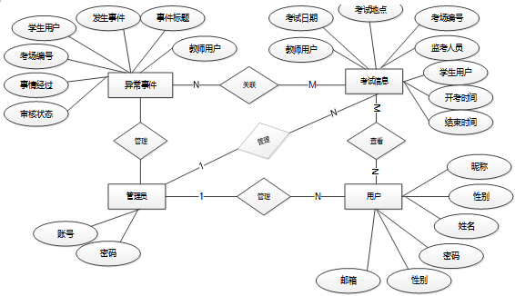 下面是整个考务管理系统中主要的数据库表总E-R实体关系图。