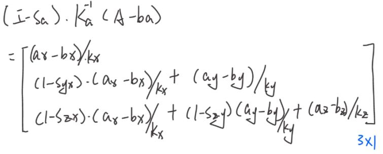 根据链式求导法则,推导残差f对Ka,Sa,ba的雅可比: