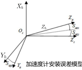 内参模型的建立应该是基于正交的b系的,比如一个沿着zb轴方向的加速度,其会对xa轴、ya轴、za轴造成分量:
