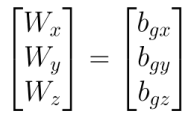 陀螺仪内参估计在加速度计标定完成后进行,因此认为此时加速度计无误差。令代表在第 k 个静止位置时,三个加速度计的输出构成的矢量在IMU坐标系下的表示,即: