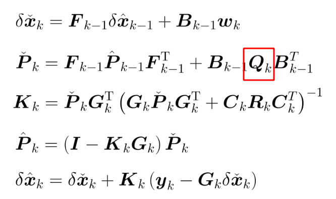 在基于滤波的系统中,信号误差的影响更加直接,它构成了过程噪声协方差矩阵: