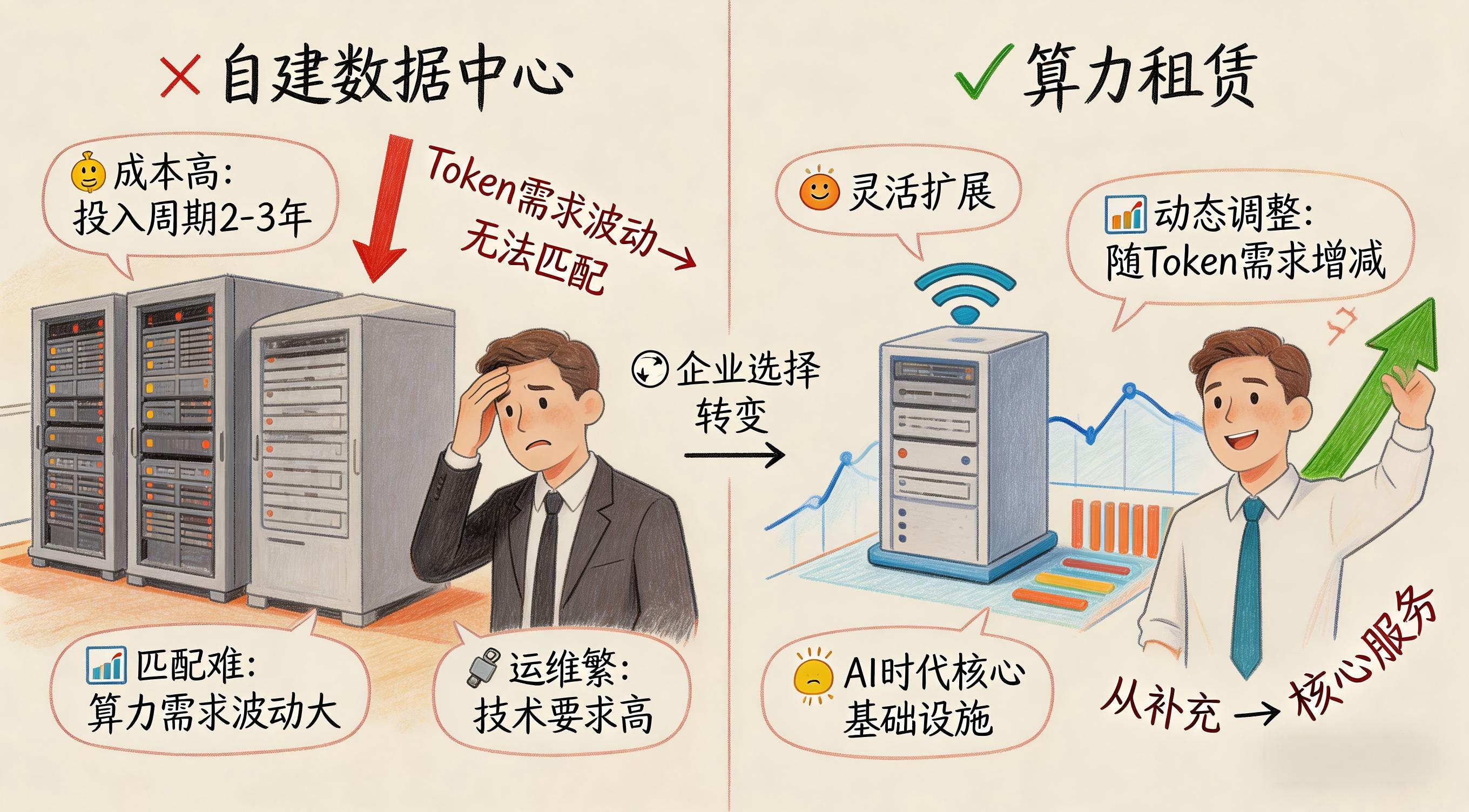 越来越多企业选择通过算力租赁获取资源,而不是自建数据中心。